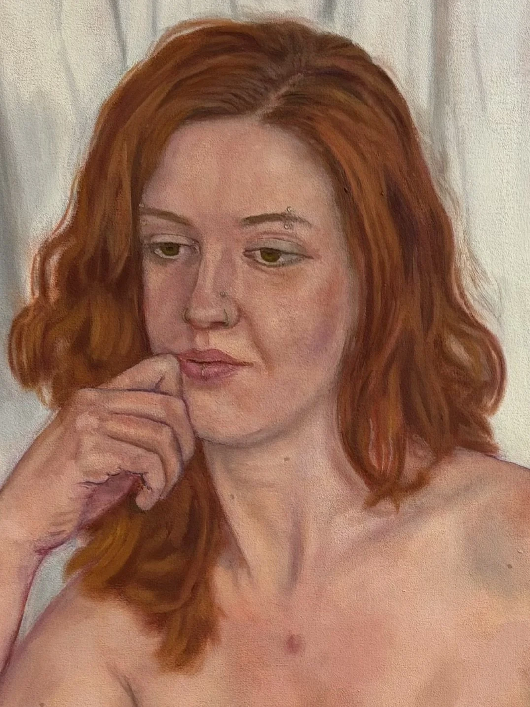 Ro with Hair Down, oil on canvas, 66”x42”, 2023